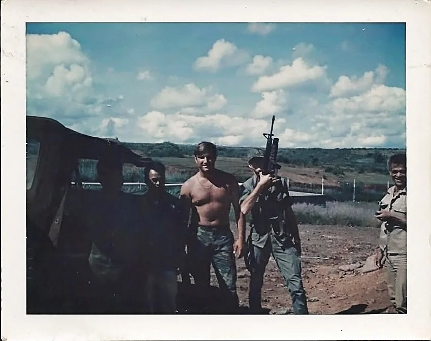 On far right, a POW interpreter, on my left, AIC Tarloton, a guard for POWs. On his left, two V.C. who was captured up on Monkey Mountain which is not shown in this photo.